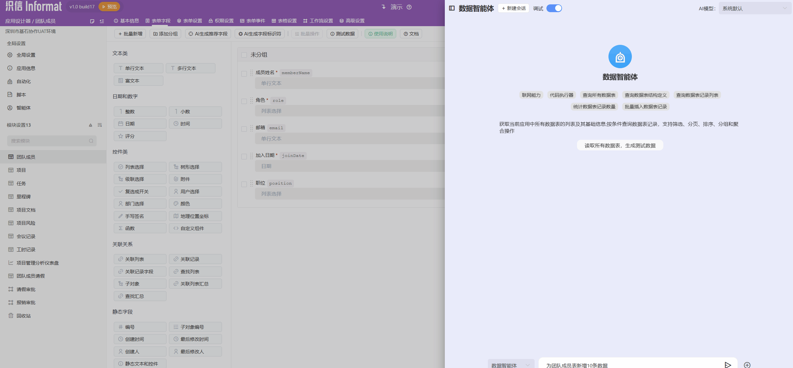 [011282] 【AI】新增数据智能体,支持插入测试数据